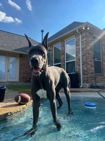 Meatball has completed his CHIC with flying colors! We used PennHIP to get an accurate measure of his hip scores and he has better than average. Testing results https://ofa.org/advanced-search/?appnum=2572874. Meatball is a medium drive Great Dane with a hugely goofy personality and LOVES to play. He has done extremely well in FastCAT and has his CH from showing in UKC. He will be available for use to approved females when he is 2 In June 2025.